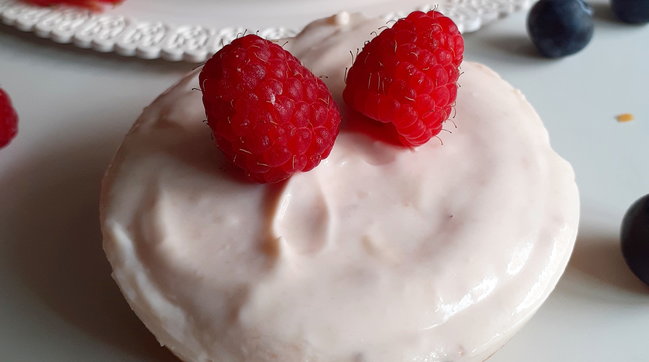 Riprendiamo i pirottini dal frigo, versiamo in ognuno la farcitura , livelliamo la superficie e mettiamo in frigo almeno 4 ore prima di servire decorando con mirtilli e lamponi a piacere.